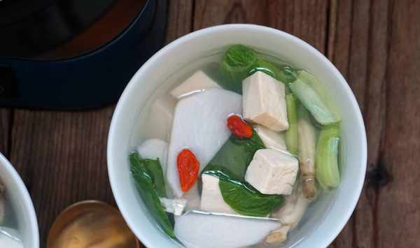這個湯做的時候,添加瞭豆腐和青菜,還放瞭一點芋頭片,不放一滴油,口感清甜不油膩。冬天來一碗,暖乎乎的,不僅容易消化,還有暖胃的功效,喝起來味道特別的鮮,做法也極其的簡單,搭配米飯和饅頭都好。