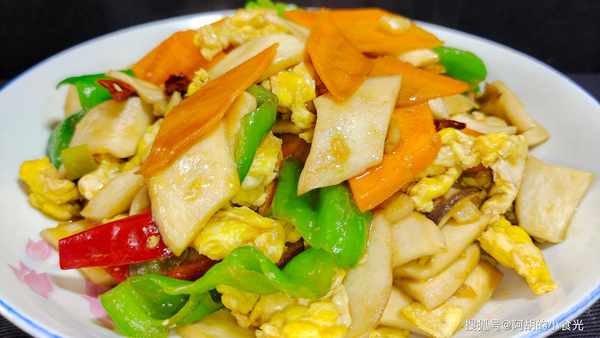 食材準備:杏鮑菇幾根,雞蛋3個,胡蘿卜半根,青椒2個,蔥蒜,幹辣椒,生抽,蠔油,白糖少許,雞精,食用油,陳醋,食鹽,幹淀粉