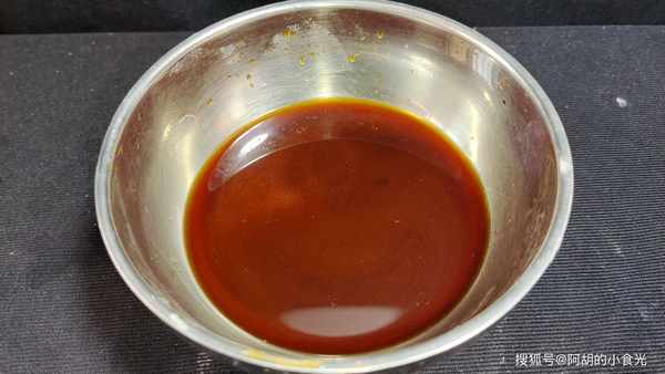 第三步:炒菜是需要一個碗汁,在空碗中加入生抽3湯匙,加入陳醋半湯匙,加入蠔油2湯匙,少許食鹽,雞精和白糖,再來半湯匙幹淀粉,2湯匙清水攪拌均勻備用。