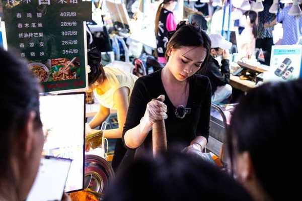 視頻被武林夜市管理方看到,可兒被邀請入駐武林夜市,營業額迎來瞭質的飛躍,還有不少從全國各地的網友趕來付費學藝。
