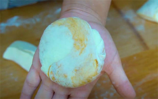 6.收口處壓在下面按扁,生胚就做好瞭。