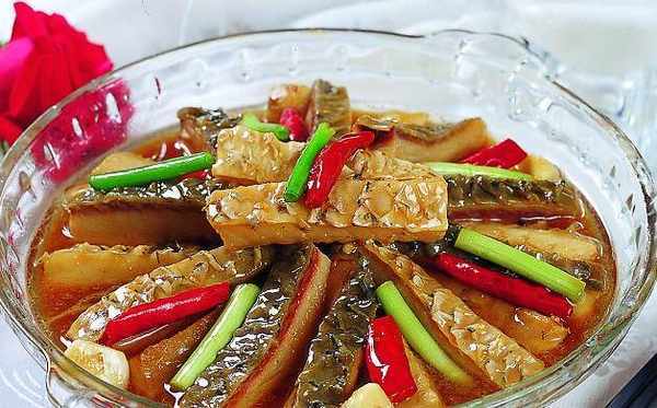 花雕魚:將魚肉頂刀切條備用,用花雕酒、鹽、鮮醬油將魚條醃制20分鐘。蔥切段、蔥白切絲、薑切片、大蒜整隻備用。鍋中做油,5成熱時下入蔥薑蒜炒香,下入魚條翻炒幾下後烹入花雕酒、鮮醬油。加入清水至與食材平齊後大火燒開,加入鹽、糖調味,蓋蓋大火燜燒至魚條松軟入味後出鍋,點綴少許蔥絲即成。這道菜的味道極其鮮美,都來嘗試一下吧。
