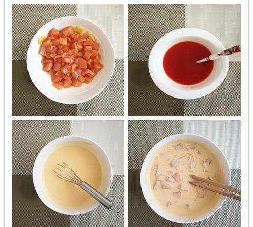 2、小碗內加入番茄醬、白糖、蜂蜜、清水攪拌均勻待用。