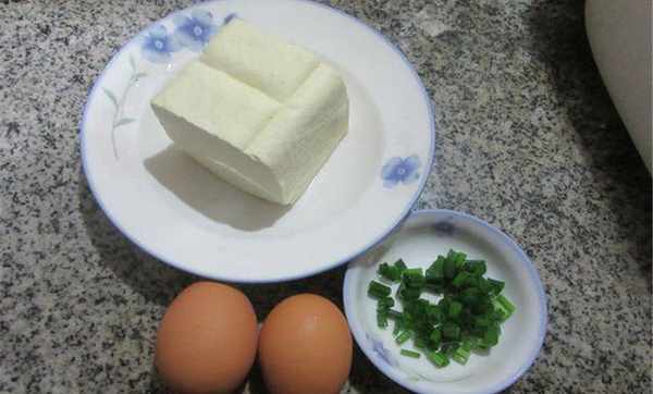 1、準備好所有材料。最好用是老豆腐,面粉用普通中筋面粉就可以。面粉和雞蛋起到粘合作用,使丸子不易散開,而且可以使油炸丸子外焦內嫩。