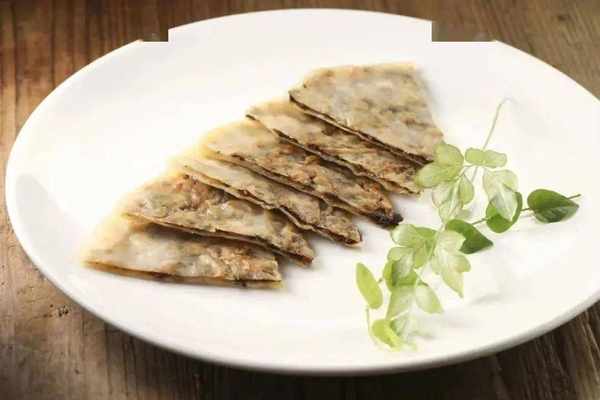 3、平底鍋內放入20g花生油,燒熟放入面餅,煎成兩面金黃,出鍋切塊即可裝盤食用。