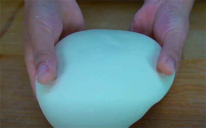 1.準備400g的普通面粉,再加入4g的酵母粉,溫水200毫升開始和面,揉成團之後取出來,放在案板上多揉一會兒,把表面揉光滑,像這麼光滑就行瞭。