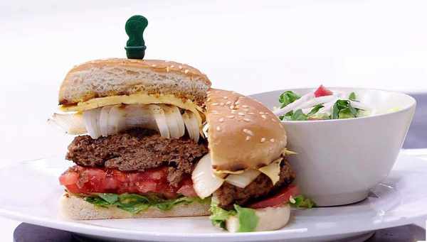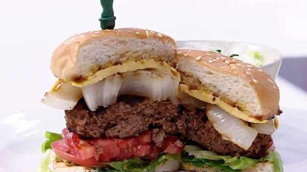 這款牛肉漢堡,肉餅飽滿鮮嫩,搭配上新鮮的蔬菜、充滿芝麻香的面包,精心配好醬汁,一層層夾好,大口咬下去時,便能感受驗收勞動成果的舒爽!簡單三步就能完成 ,味道堪比快餐店的鮮美!