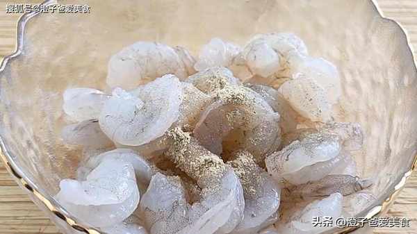 3.準備一些洗凈幹凈的蝦仁先醃制一下,加入少許鹽、少許白胡椒粉去腥,倒入少量料酒,用手抓拌均勻,再打入一個雞蛋清抓拌均勻,加入一點玉米淀粉,抓拌均勻,最後加入一點食用油,鎖住水分。再來調一個淀粉水備用。