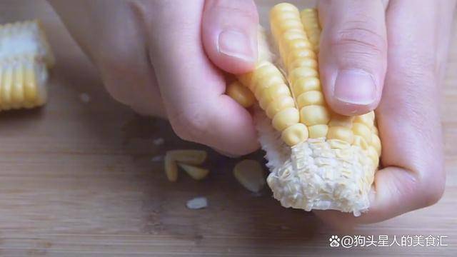 3.剝一點甜玉米下來,不用太多,半根就可以瞭。