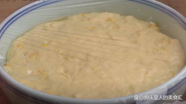 5.接著把玉米粒放入面糊中,把它們攪拌均勻。蓋上蓋子,讓它醒面半個小時左右。