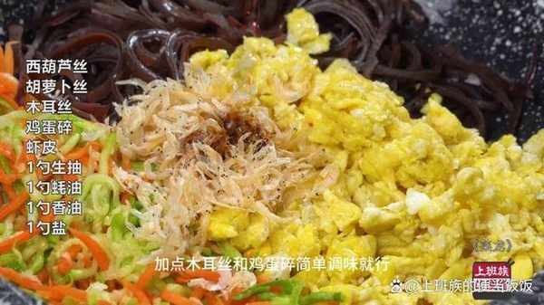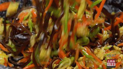 再加點木耳絲和雞蛋碎,簡單調味就行,經典組合味道絕瞭!