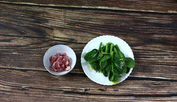 菜心用清水清洗幹凈、瀝水放碟子裡備用;瘦肉切片。