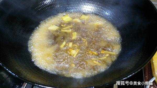 6、鍋底留少量油,小火下蔥薑絲炒香,依次加蠔油、生抽、黃酒、適量水。