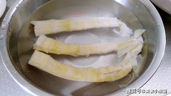 1、竹筍幹我泡瞭4個小時,這樣更舒展,去掉咸味。