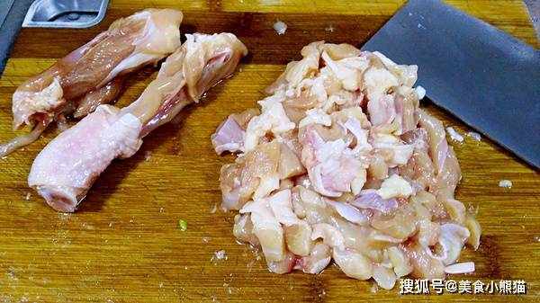 2、雞腿洗凈剔骨,肉切小塊,蔥薑切絲。