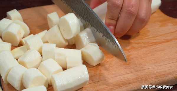 1、去皮洗凈的山藥切成小段,山藥選擇鐵棍山藥,營養價值更高。切好後放入大盤鐘水開,上鍋蒸20分鐘。