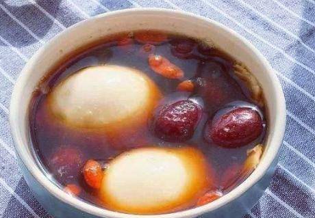 代料:紅糖適量,雞蛋3個,紅棗5顆,薑3片,桂圓幹適量,枸杞子1小把;