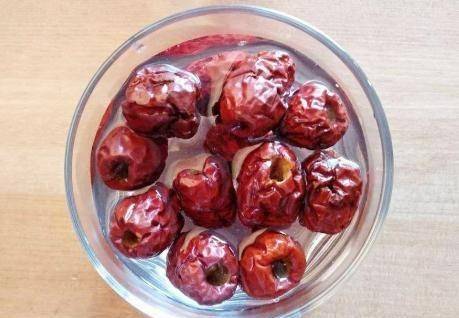 第二步是剝皮備用。準備桂圓幹適量,去皮。將紅棗用清水浸泡片刻,可以軟化表皮。薑洗凈切片;