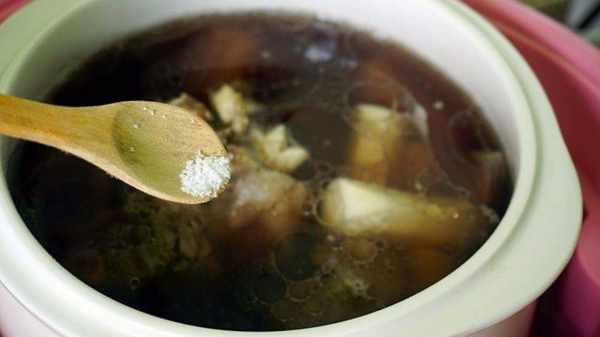 水燒開,撇去浮沫,大火煲半小時轉小火燉兩個半小時,加鹽關火。