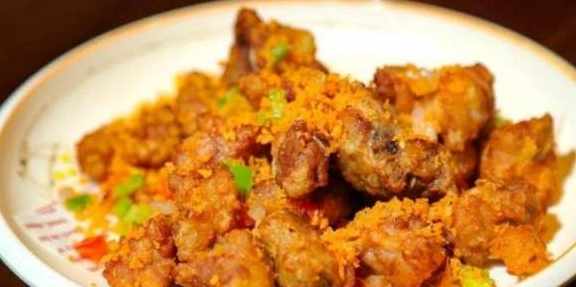 2.鍋裏熱油5成時,把醃制好的排骨放入,小火慢慢炸制熟透,再慢慢升高油溫,炸制金黃酥脆即可撈出。