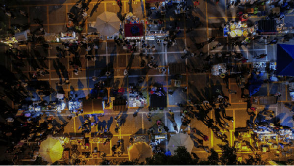 ▲“五一”期間,民心佳園夜市人流如織。(李文科 攝)