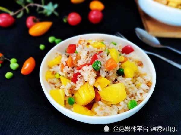 食材:菠蘿 胡蘿卜 玉米 青豆 香腸 熟米飯 大蒜