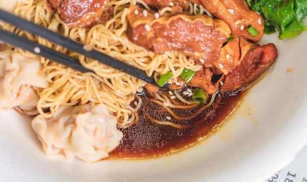 與牛腩相比,雲吞可能稍顯遜色,但也不過不失,爽勁的雲吞皮裡面包裹著醇香的豬肉餡,一口一個也過癮!