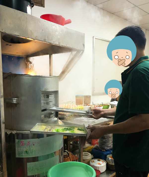 攤主應該是一對中年夫妻(這個沒細問,看著像),動作很默契,一個負責蒸米漿,一個負責撒料,稍微得空時,就去收拾桌子。