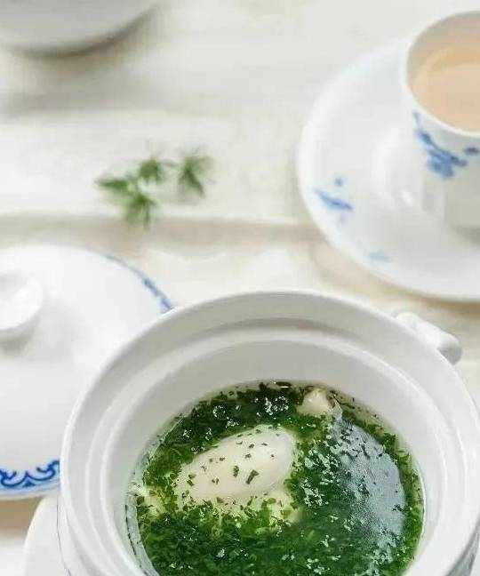 點評:豆腐蝦餃色澤光潤潔白,第一眼看上去以為是荷包蛋,吃到嘴裡才發現是豆腐,外皮香嫩軟滑,餡料鮮味十足,碧綠色的湯更是養眼,清新淡雅的一道湯品很適合夏季食用。