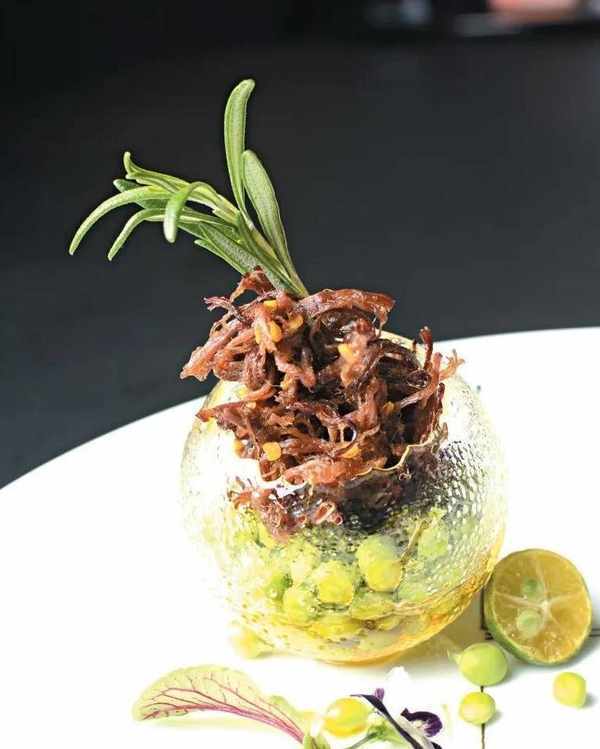 點評:酸甜咸辣,開胃醒口。這道菜以白醋調和黃芥末,促進發酵,酸而不烈,色澤清透。