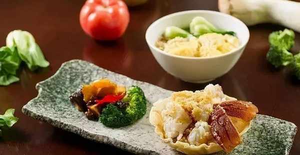 雲南水果筍,雪菜,烤腐皮,伊朗開心果,松子,山核桃,蘆筍,奶油。