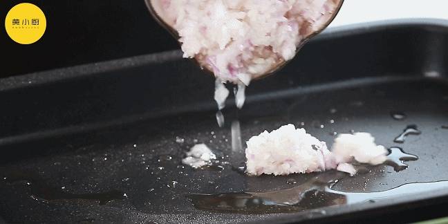 三文魚清洗後吸掉表面的水,表面塗抹上鹽、黑胡椒粒,正反面塗抹均勻;烹飪機中加入洋蔥、蒜瓣打碎備用