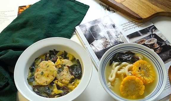 晚餐:玉米雞湯面+魚餅海帶湯