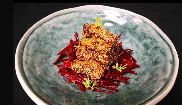 牛肉300克、辣椒絲50克、芝麻20克、辣椒面30克