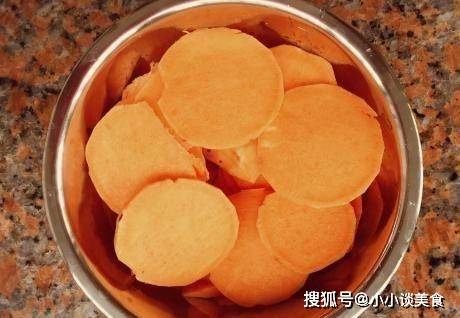 烹飪技巧:1.紅薯切成薄片。如果刀不好,可以使用切片工具進行操作。紅薯片切好後記得用清水泡一會,去掉表面的淀粉,紅薯片會更軟。香脆;
