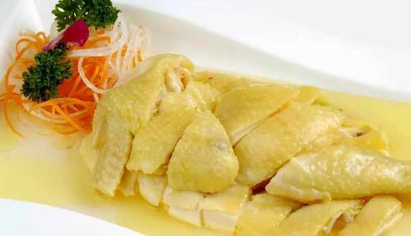 3、把雞肉剁成小塊,放入湯盆中,加入薑絲,1茶匙食鹽,1湯匙生抽,1茶匙湯,1湯匙淀粉,抓勻後放入黃花菜和香菇,加入2湯匙的花生油,抓勻;