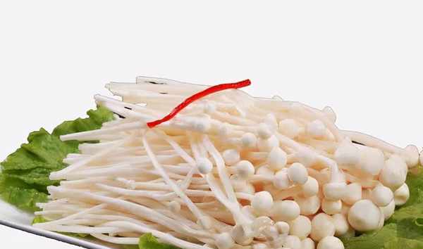 【材料】春菜200克、番茄1個、黃花菜20克、金針菇50克、薑4片、鹽、油適量