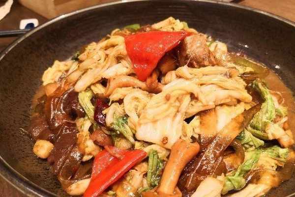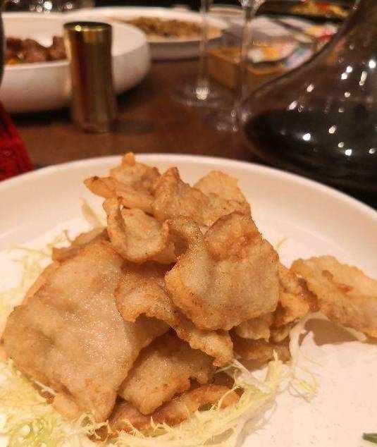 這是一盤鍋氣大白菜,普通的白菜,在這裡也能激發出食材味道的原始靈魂。白菜軟爛鮮美,配菜也恰到好處,二者的組合夾雜瞭鍋氣的熏香,與獨特的味汁混合一起,簡直就是不可多得的下酒小菜。