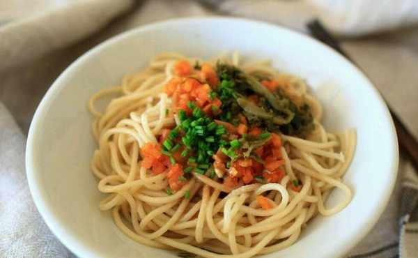 【所需食材】:主料:堿面。輔料:醃蘿卜,芝麻醬,蔥花。調料:鹽,香油,芝麻醬。