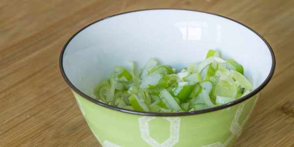 再往鍋中加點蔥花,翻拌均勻後就可以關火瞭