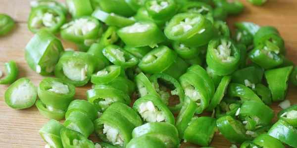 配菜我還準備瞭一個紅辣椒和2個青辣椒,洗凈後去籽切滾刀塊,切好後也先裝起來;