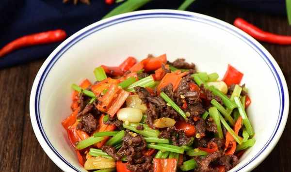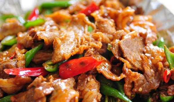 〖食材清單〗牛肉、青尖椒、紅尖椒、芹菜、大蒜、生薑、花椒、料酒、生抽、鹽、糖、辣味汁、油、淀粉