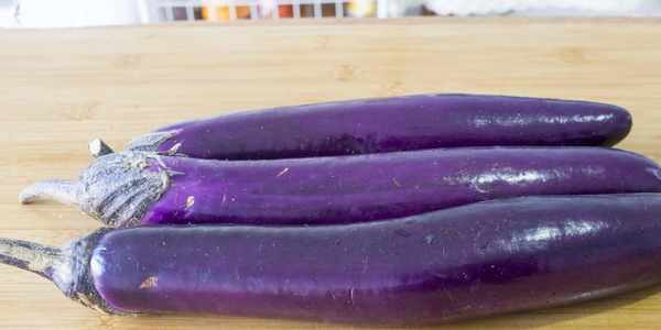 1、三個茄子,洗幹凈後直接放到砧板上來