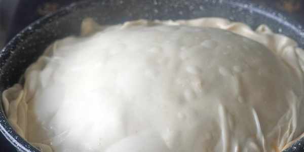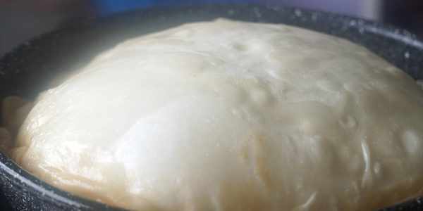 13、隔著蓋子就可以看到餅皮鼓起來瞭,時間到瞭,我們的餅皮已經好瞭,先把它取出來裝入碗中備用