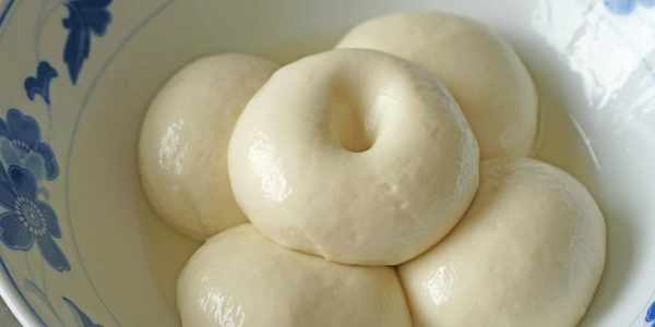 11、我們來看一下面團醒好瞭沒,用手指按壓下,如果沒有馬上回彈,就說明已經醒好瞭,我們把面團取出來放砧板上,用手掌按壓成小餅