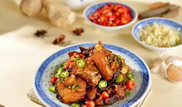 直到煎至兩面變成金黃色後下蒜末和薑末,炒出香味後加1勺蠔油,1勺生抽,半勺老抽,半勺白糖提鮮,1勺鹽調味,翻炒均勻後再加1碗清水,蓋上蓋子中火煮開後轉小火慢慢收汁。