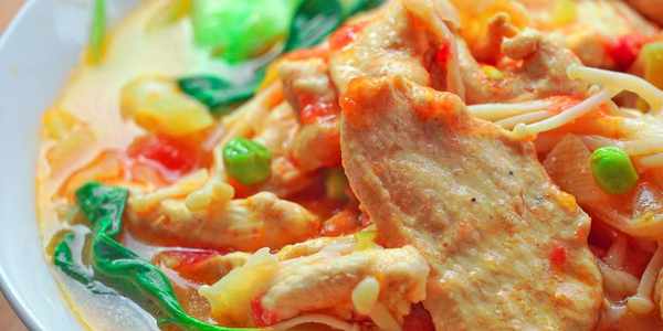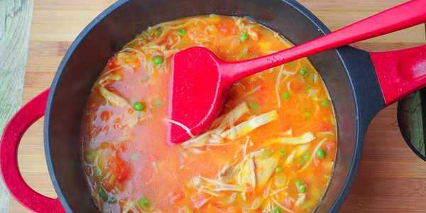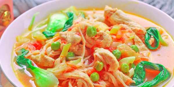 〖食材清單〗西紅柿、雞脯肉、1個蛋清、大蔥、上海青、金針菇、青豆、1勺胡椒粉,1勺生抽、1勺蠔油調味,1勺料酒