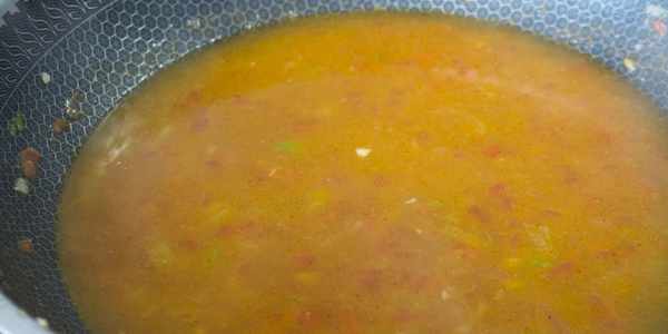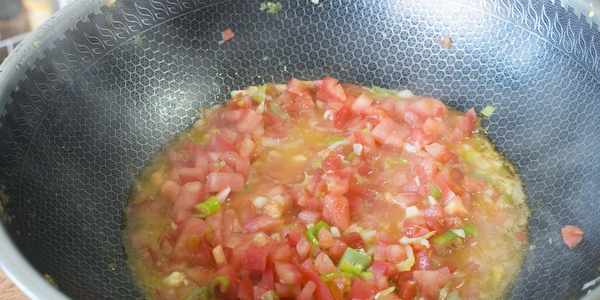 把西紅柿汁都炒出來後倒入調好的醬汁