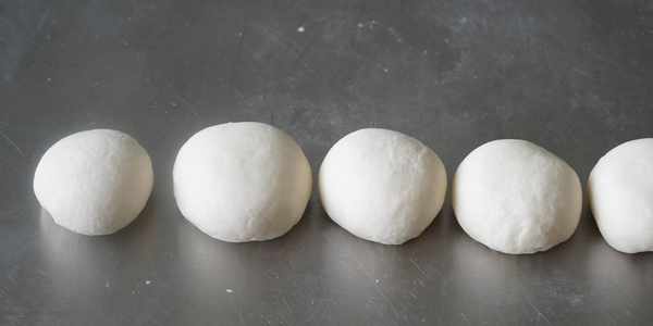 4、現在我們上手揉面,揉成像這樣光滑的面團就可以瞭,直接放到砧板上搓成長條,再分成大小相等的面劑子