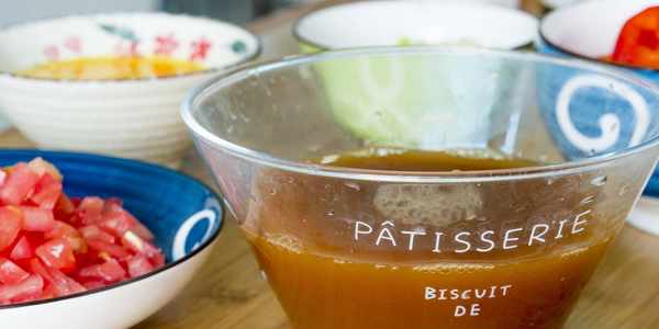 3、接著我們來調一個醬汁:2勺生抽、1勺老抽、1勺陳醋、1勺蠔油、1勺鹽、1勺糖、1勺淀粉、半碗清水,攪拌均勻後就可以瞭;